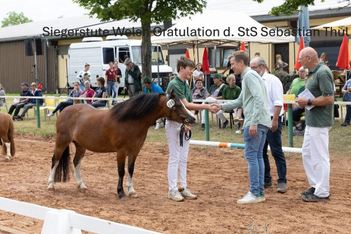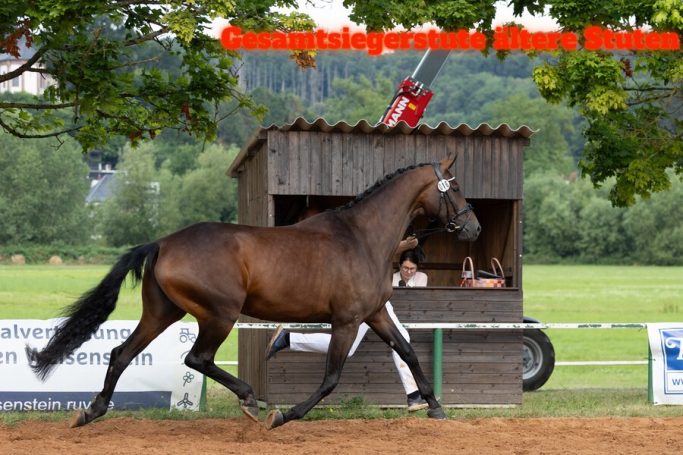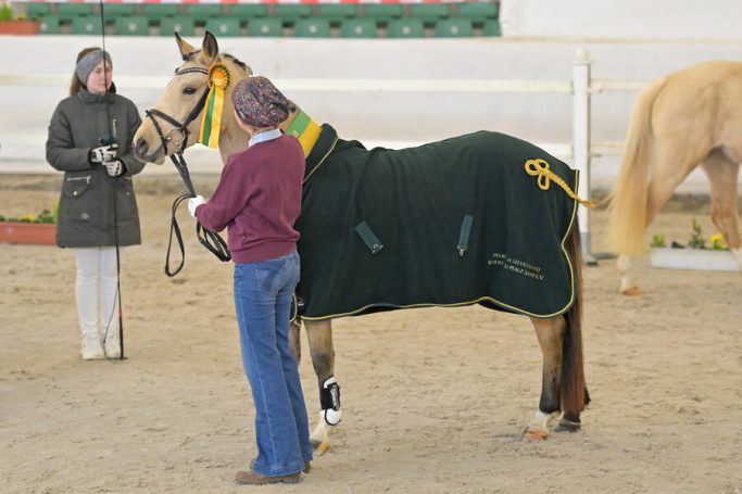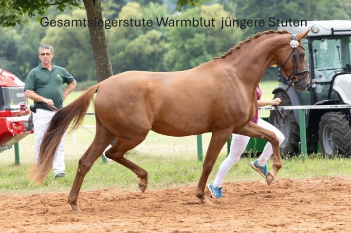 Unter den Augen des Richterkollegiums von Mario Schreiber und Gita Zühlsdorf stellten sich 11 Stuten dieser Prüfung. Fremdreiter Stefan Eckel überprüfte die Rittigkeitsmerkmale. Die Abteilung der Warmblüter konnte die Stute Balvenie Gold ( Bon Coeur x Fürstenball) ausgestellte von der ZG Jelden für sich entscheiden. Bei den Ponys durfte sich Donnerlittchen ( Dating AT x Dressboy) ausgestellt von Nathalie Fischer, die Siegerschärpe umhängen.