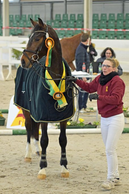 Auf dem zweiten Platz rangierte Graceful/T. (High Motion/T. – Grace/T. – Berlusconi/T.) aus der Zucht von Jennifer Miriam Bergmann-Krüger und nun im Besitz von Johannes Sefrin, Contwig, die ein eindrucksvolles Gesamtpaket darstellte und besonders im Schritt punktete.